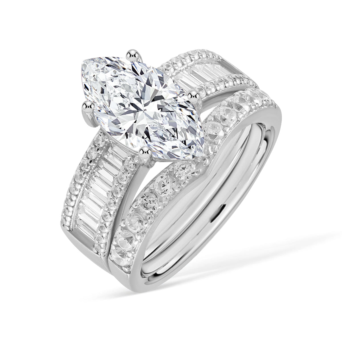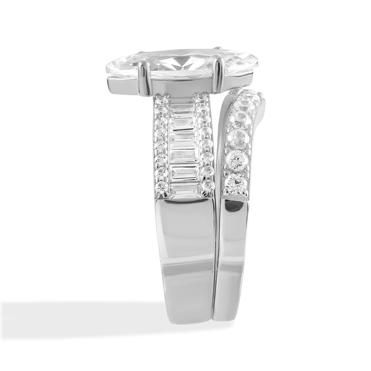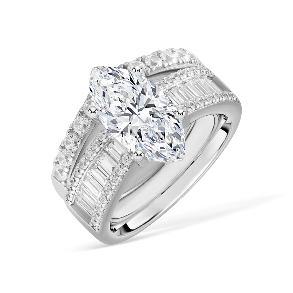 La bague a une belle brillance. Les pierres sont claires et captent parfaitement la lumière. C'est un bijou magnifique.
