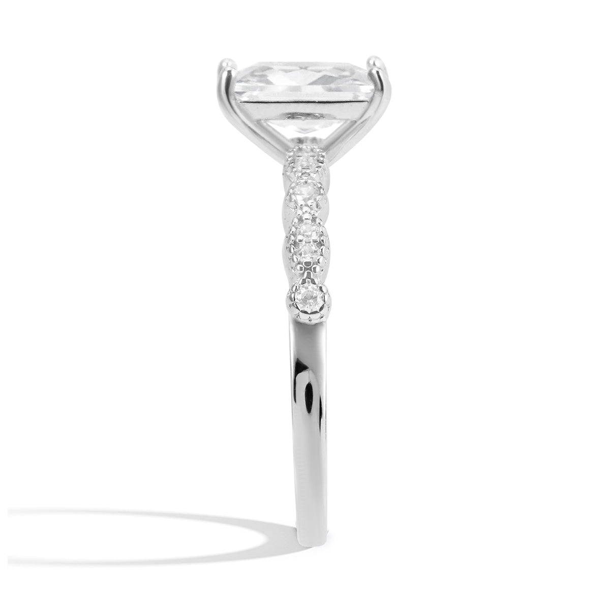 The ring has a beautiful shine. The stones are clear and catch the light perfectly. It's a stunning piece of jewelry.
