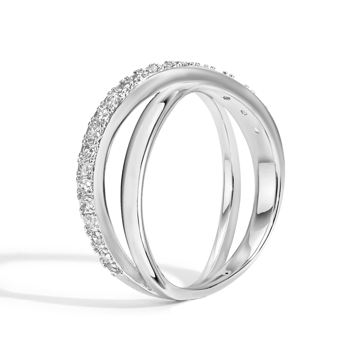 The ring has a beautiful shine. The stones are clear and catch the light perfectly. It's a stunning piece of jewelry.