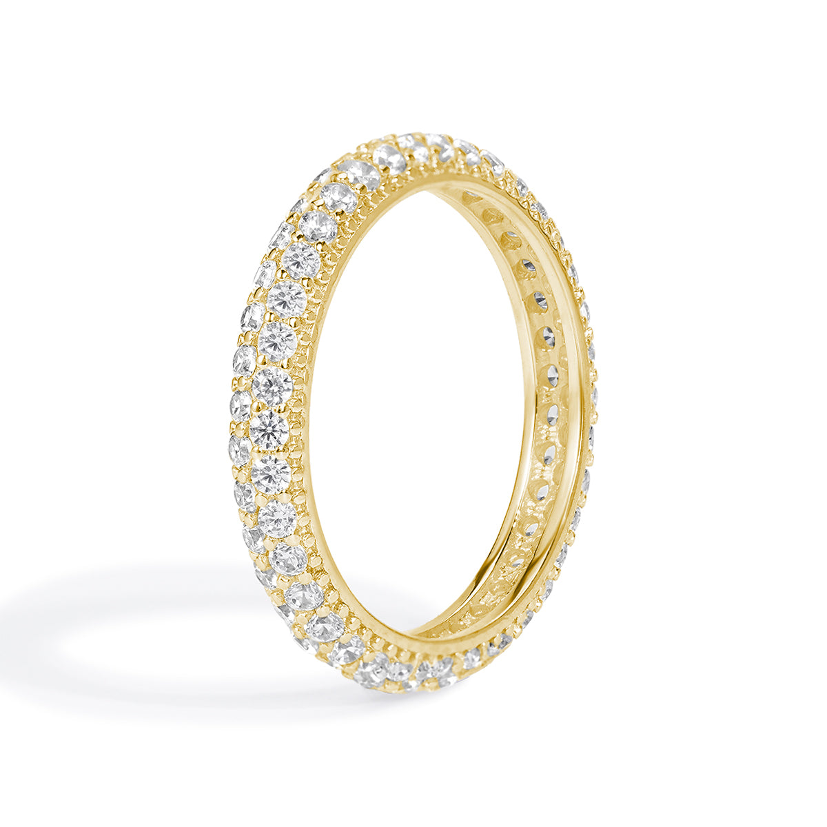 The ring has a beautiful shine. The stones are clear and catch the light perfectly. It's a stunning piece of jewelry.