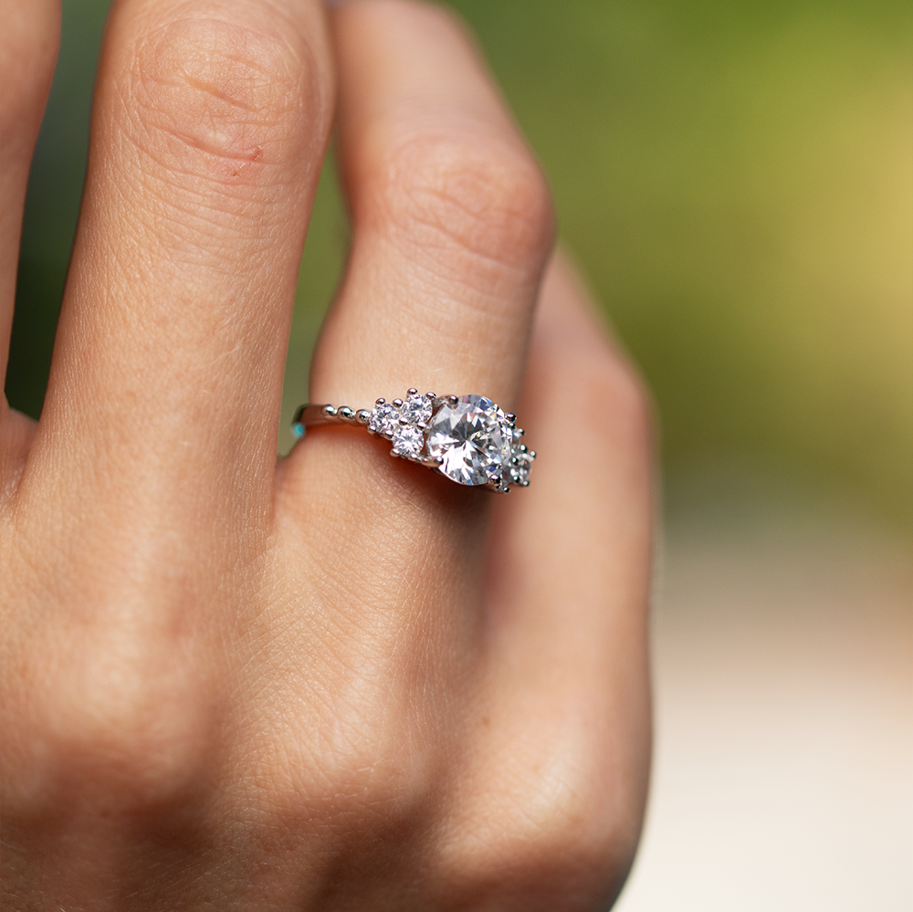 Saturno™ moissanite are responsibly-sourced, conflict-free gemstones. To the unaided eye, they appear on par with traditional diamonds, boasting impressive clarity and color. Experience beauty and ethics hand in hand with Saturno™.