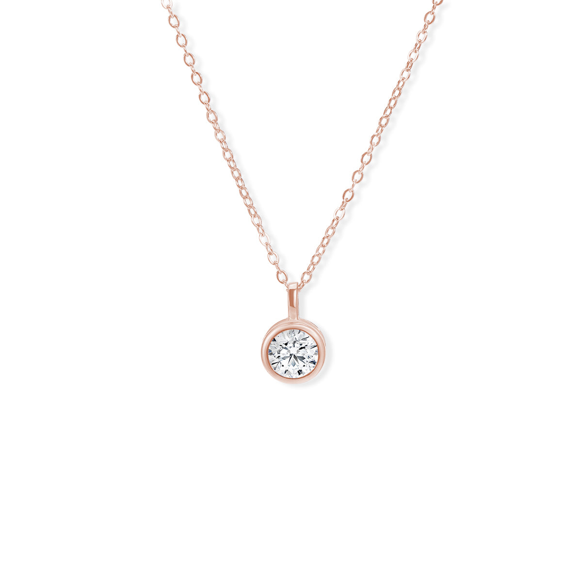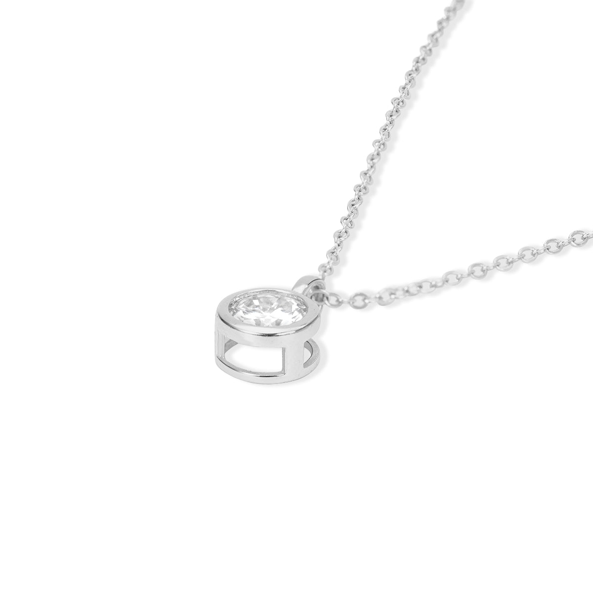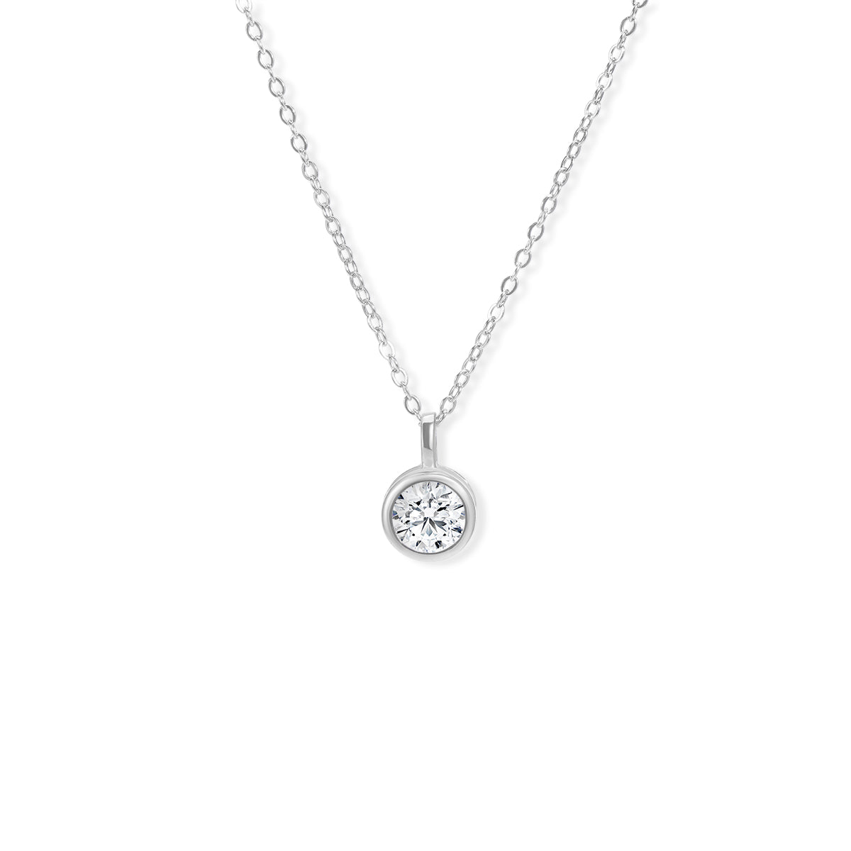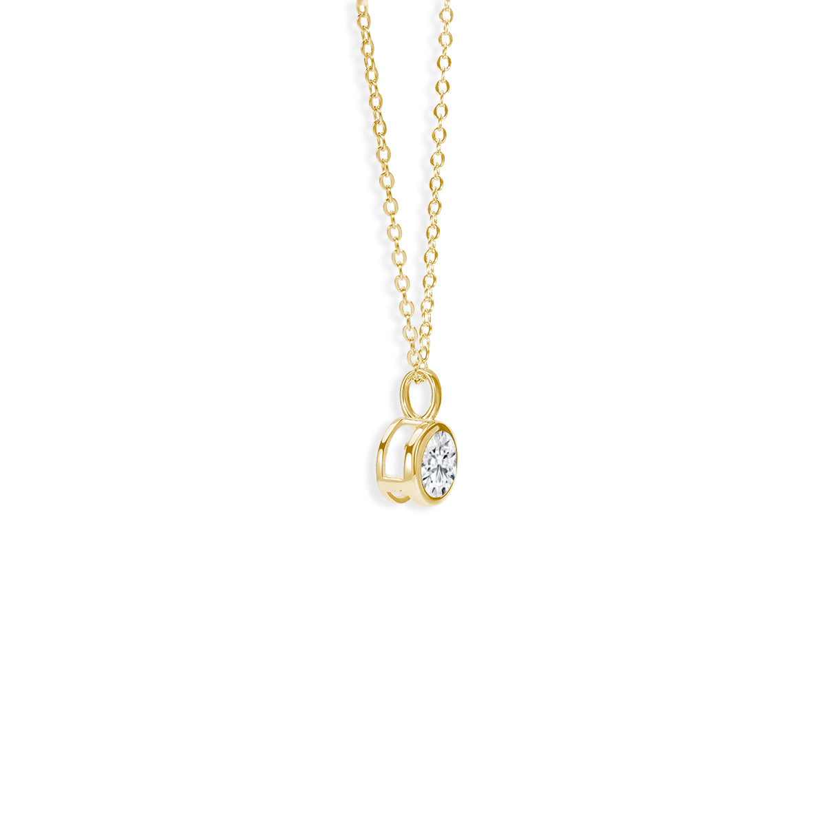 A glimmering round diamond rests within a soft bezel setting as an integrated bail allows for graceful movement along the chain. The natural elegance of this delicate pendant makes it a perfect option for everyday wear. The length of the necklace can be adjusted to either 16 or 18 inches to suit individual preference.